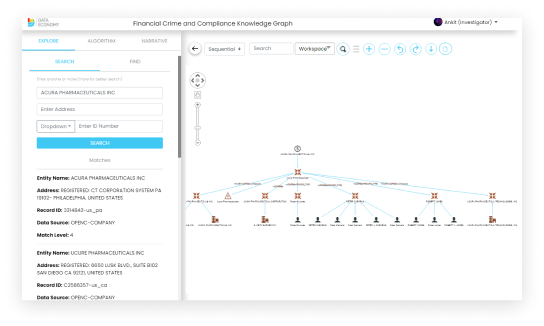 Narrative functionality captures case narrative while traversing through the network and probing the relations with context. This feature provides the ability to capture entities, their connections, and associated data in the graph format along with analysts' comments. This feature saves analysts a significant amount of writing time as they don't have to narrate the details as the captured graph has all the details. It can integrate with CRM or Case Management tools for SAR filings, resulting in faster response time to regulators and accurate depiction of the evidence as a story.